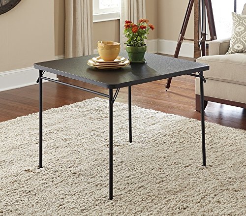 Unfold some fun with a versatile table designed for indoor or light outdoor use. This table is stylish, strong and easy to clean. This versatile piece saves space and time with table legs that fold in to make for easy storage. Its 34-Inch square size offers comfortable seating for four. This table has a heavy duty steel frame and steel legs.Plastic top suitable for indoor and light outdoor use